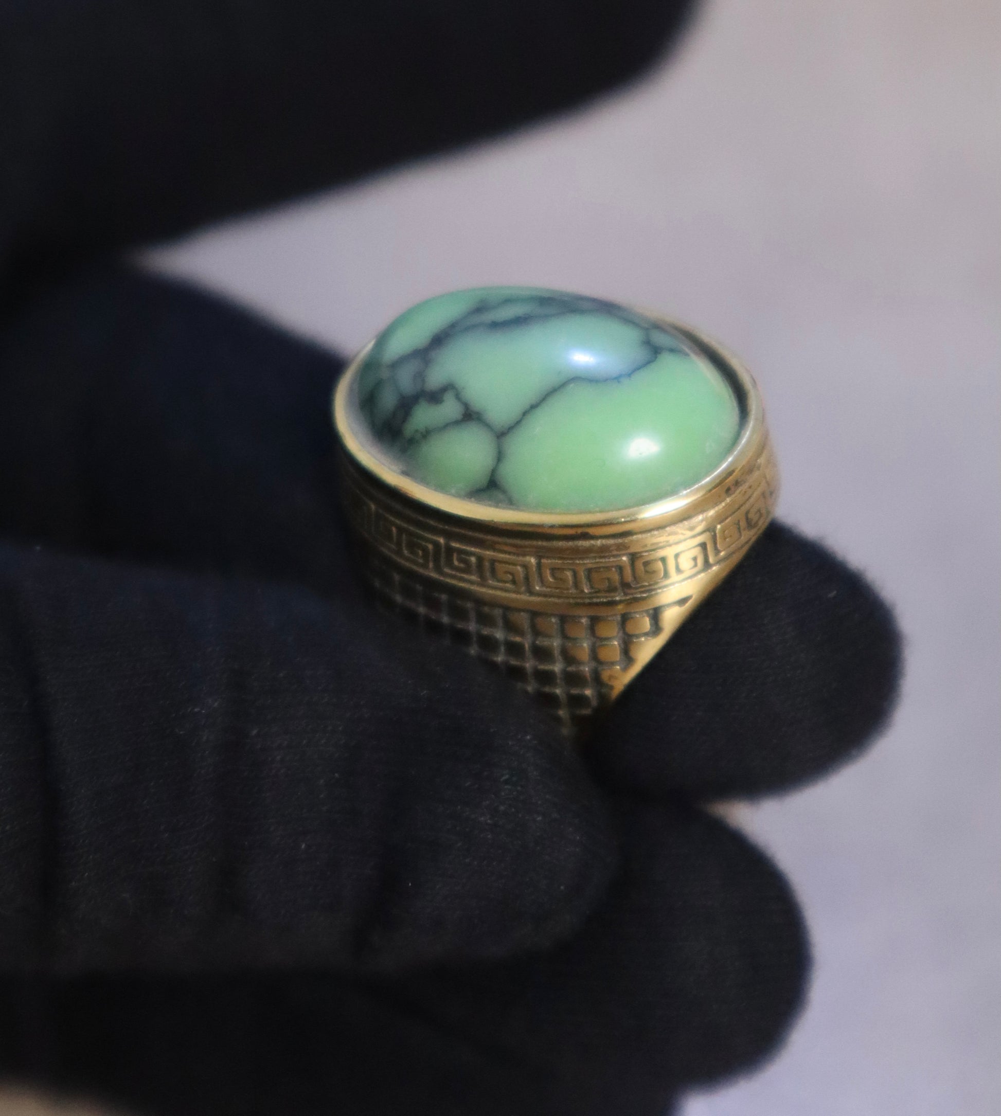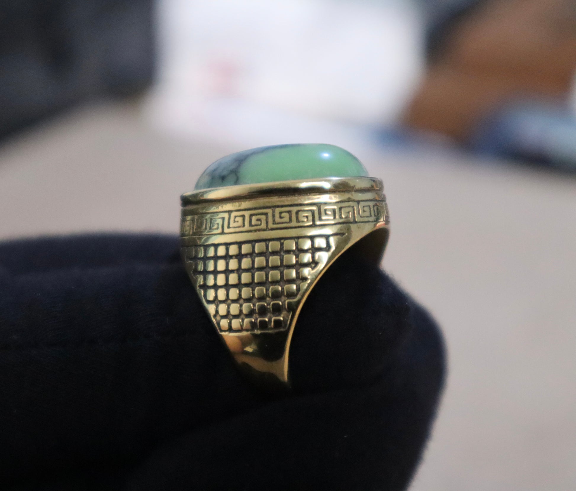 حجر فيروز قديم - الخاتم العليه صناعة يدوية (m3)