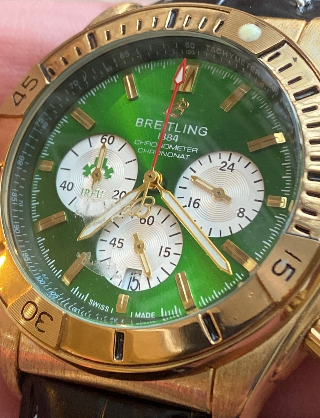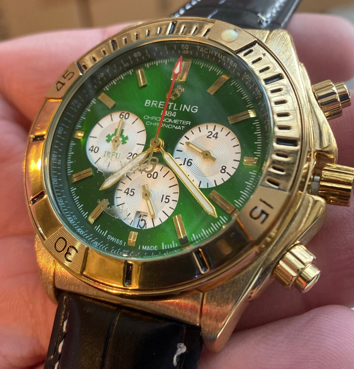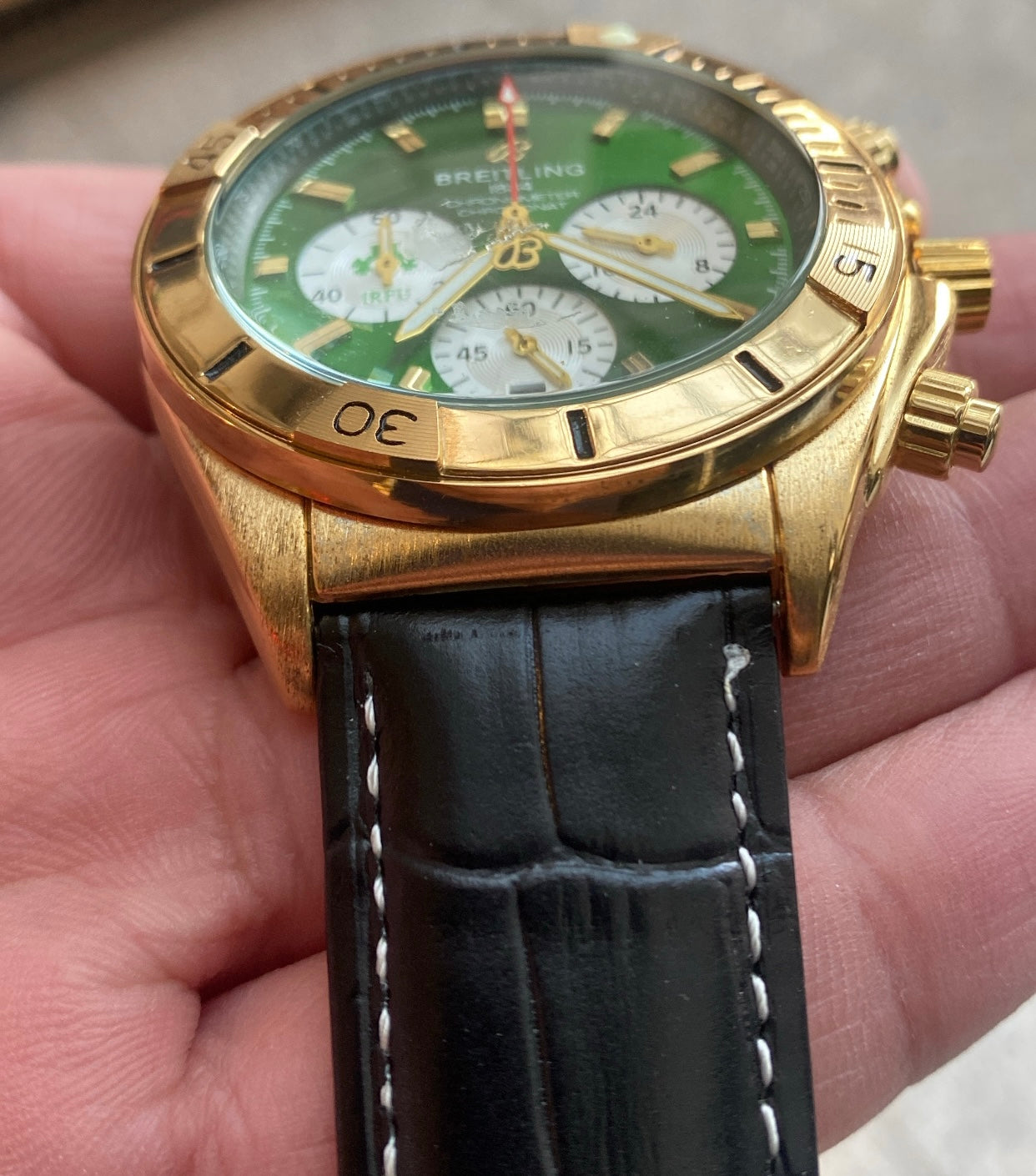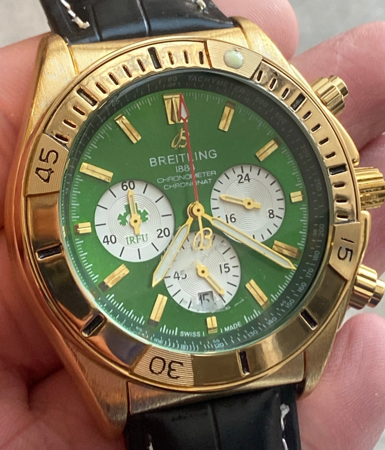هابلوت دهبي و اخضر - السير جلد اسود