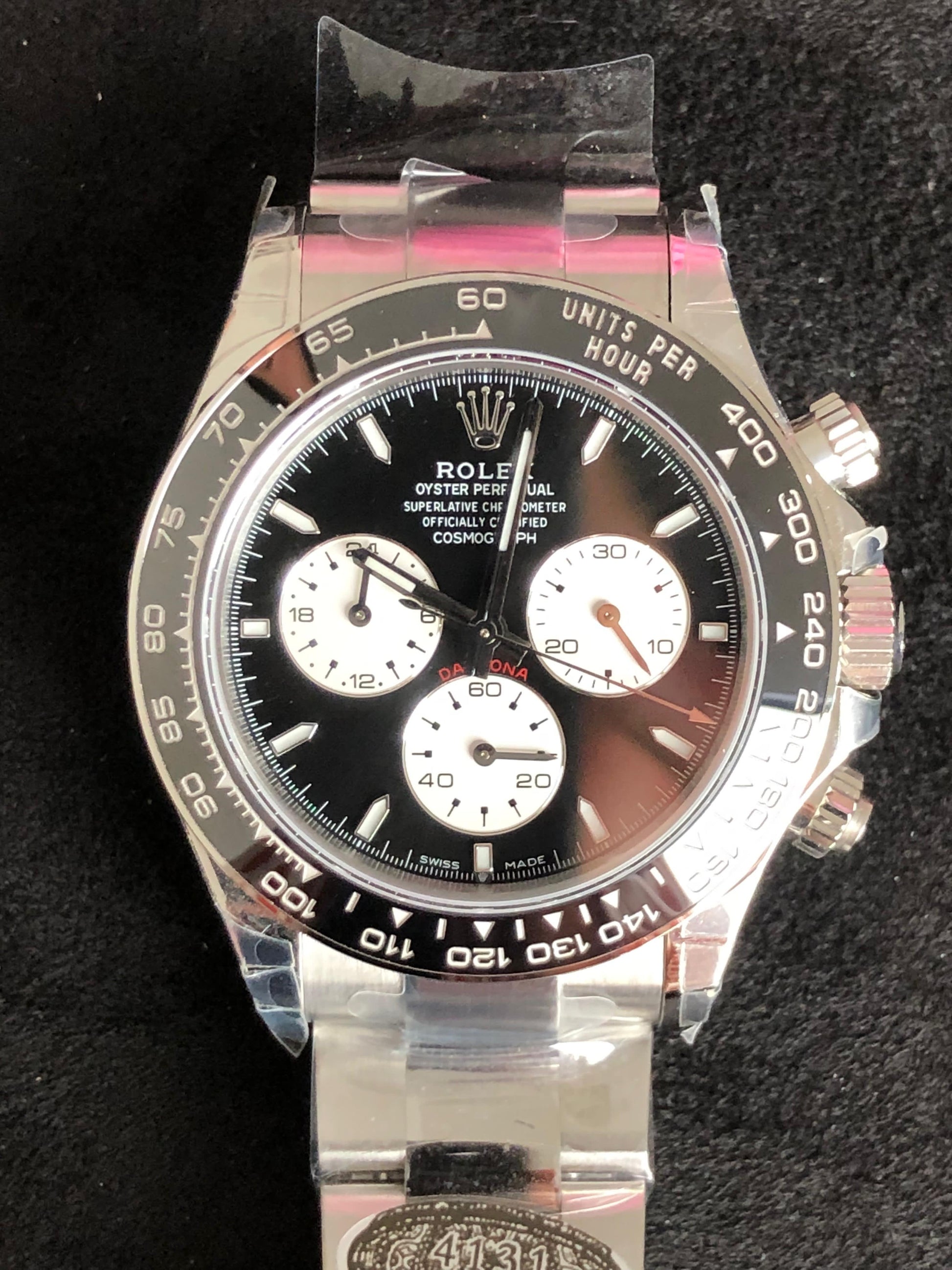 40 mm رولكس دايتونا مينا أسود وعدادات بيضاء